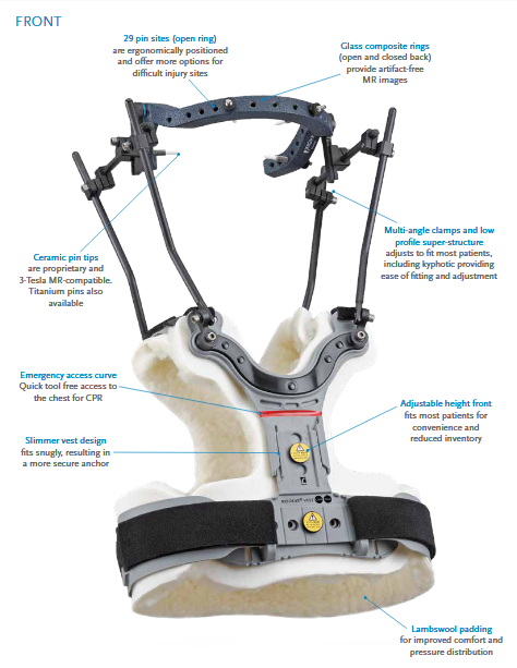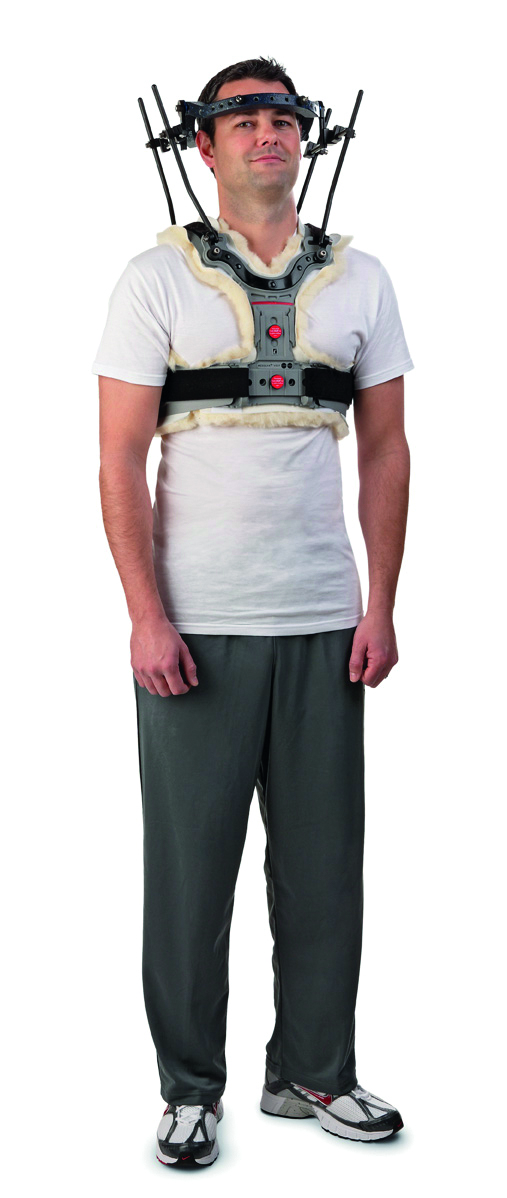 Θωρακοαυχενικό Σύστημα αποτελούμενο από στεφάνι κρανιακής στήριξης και ρυθμιζόμενο γιλέκο θώρακος. Στο σύστημα συμπεριλαμβάνονται αποστειρωμένες κεραμικές βίδες και σετ εργαλείων για την εφαρμογή στο χειρουργείο. Τόσο το στεφάνι όσο και οι βίδες που το συγκρατούν στο κρανίο είναι κατασκευασμένα από κεραμικό, κέβλαρ και ανθρακονήματα (carbon). Είναι συμβατό με μαγνητική και αξονική τομογραφία. Το γιλέκο είναι ρυθμιζόμενο και αεριζόμενο, προσφέροντας στον ασθενή άνεση. Είναι επενδυμένο με μαλακό αντιεφιδρωτικό υλικό.