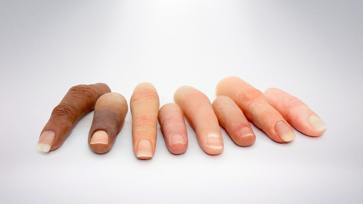 Με βάση το δικό σας συγκεκριμένο σχήμα, αλλά και χρώμα δέρματος, μπορεί να προσαρμοστεί έτσι ώστε να περιλαμβάνει τυχόν φακίδες, φλέβες, τριχοφυΐα, για ένα ακόμη πιο ρεαλιστικό αποτέλεσμα. Τα νύχια είναι κατασκευασμένα από ακρυλικό υλικό ώστε να μπορείτε να εφαρμόσετε και βερνίκι νυχιών. Απλά χρησιμοποιείτε προϊόν χωρίς ασετόν για να τα ξεβάψετε και να τα ξαναβάψετε!